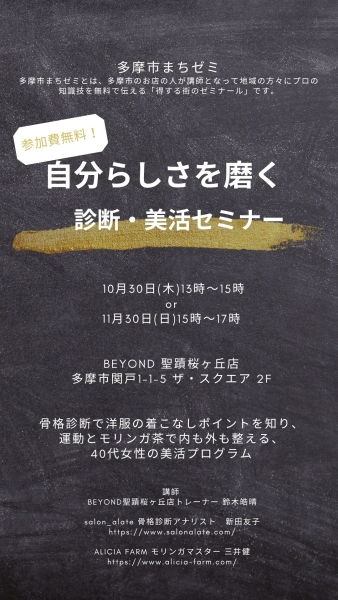 【イベント】 パーソナルジムとコラボセミナー! 多摩市まちゼミ 10/30、11/30